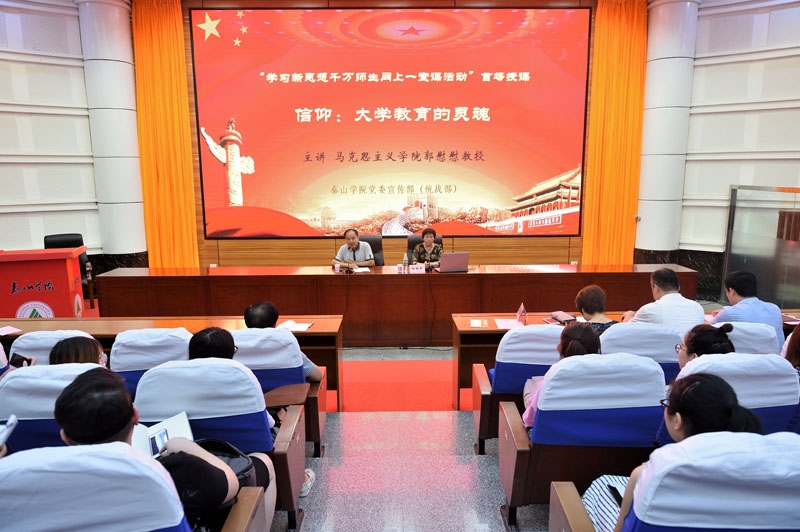 山东省“学习新思想千万师生同上一堂课活动”讲师团成员、泰山学院马克思主义学院教授郭慰慰面向教师群体以《马克思主义信仰:大学教育的灵魂》为题,从信仰的理论解读入手,阐释了马克思主义信仰的现实价值,并对高校如何抓好马克思主义理论教育,深化学生对马克思主义历史必然性的认识,教育他们树立科学的世界观和方法论等问题进行了重点讲授。