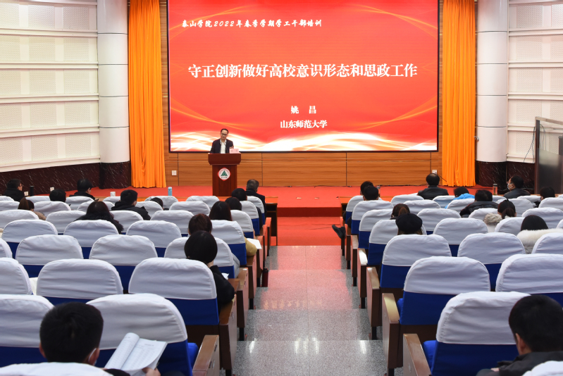 2月17日下午,我校邀请山东省高校德育研究中心、山东高校网络思政工作中心常务副主任、山东师范大学党委宣传部部长姚昌教授为学校全体学工干部作了《守正创新做好高校意识形态和思政工作》的专题报告。党委宣传部部长刘明合,学生工作处、校团委负责人,各学院党委副书记、全体辅导员,相关部门人员参加报告会。