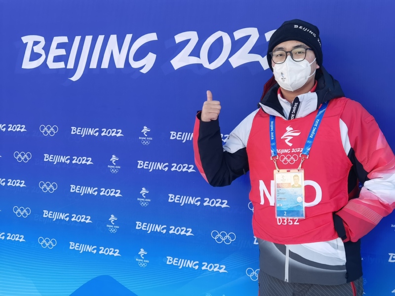 刘昕老师担任滑雪单板平行大回转项目的竞赛秘书长,张腾老师作为NTO(国内技术官员)参加滑雪大跳台终点裁判员工作,两位教师见证了谷爱凌、徐梦桃、齐广璞、苏翊鸣的夺冠时刻。