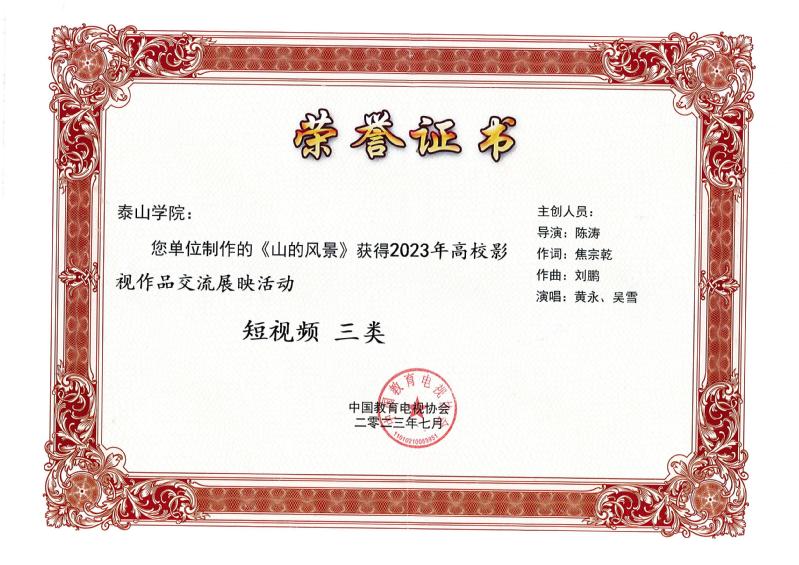 7月10日,中国教育电视协会高校电视专业委员会2023年全体大会在无锡举行。我校师生原创音乐MV《山的风景》一片在2023年“高校影视作品交流展映”活动中荣获短视频三类奖项。