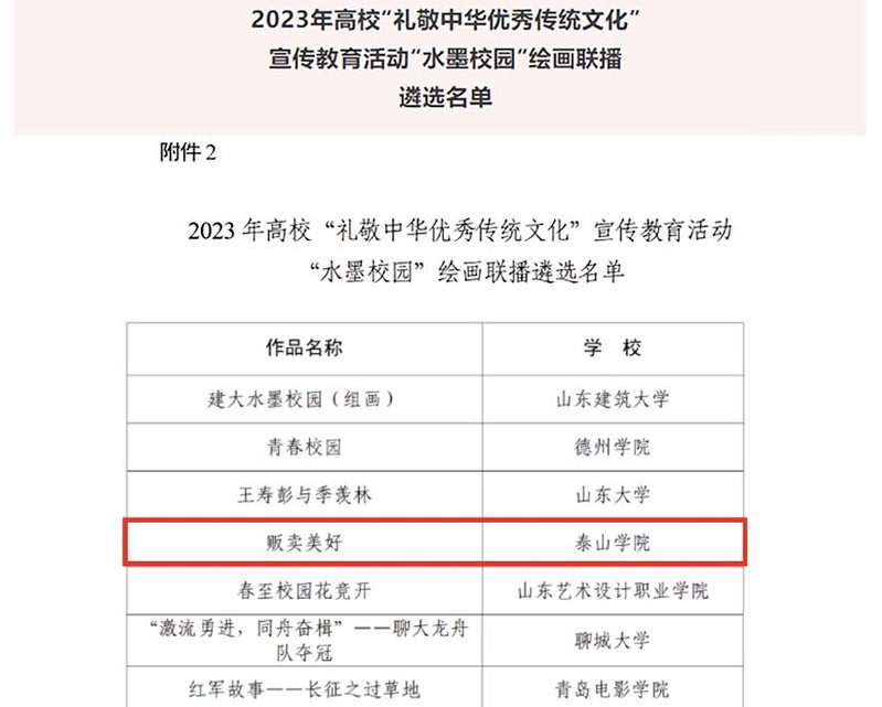 1月30日,教育部公布2023年高校“礼敬中华优秀传统文化”宣传教育活动结果,艺术学院副教授宋艳丽国画作品贩卖美好成功入选。