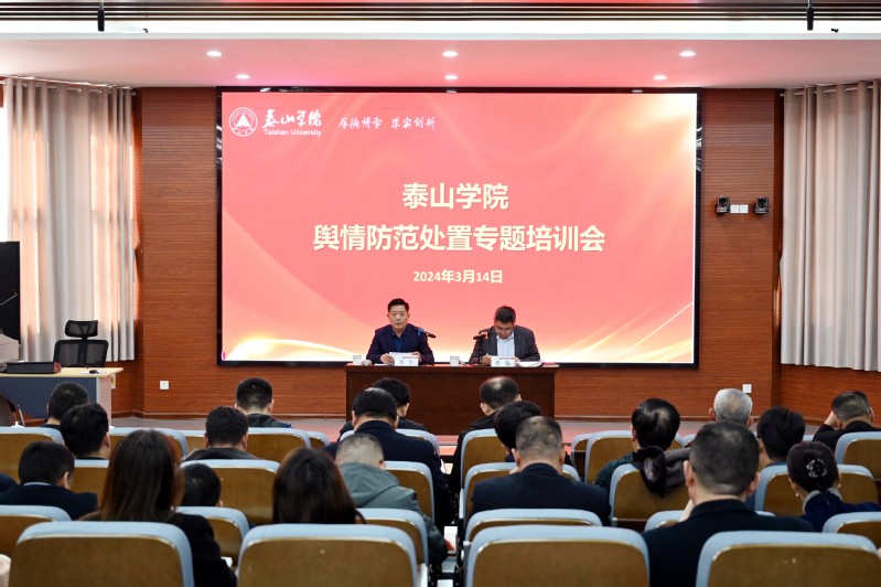 为进一步加强舆情风险防范处置工作,坚决维护校园安全稳定,3月14日下午,学校在理工楼虚拟仿真中心A2004举办舆情防范处置专题培训会,邀请泰安日报社舆情研究院两位舆情研究员做专题辅导。学校党委副书记贾军出席会议并讲话,党委委员、宣传部部长张伟主持培训会。