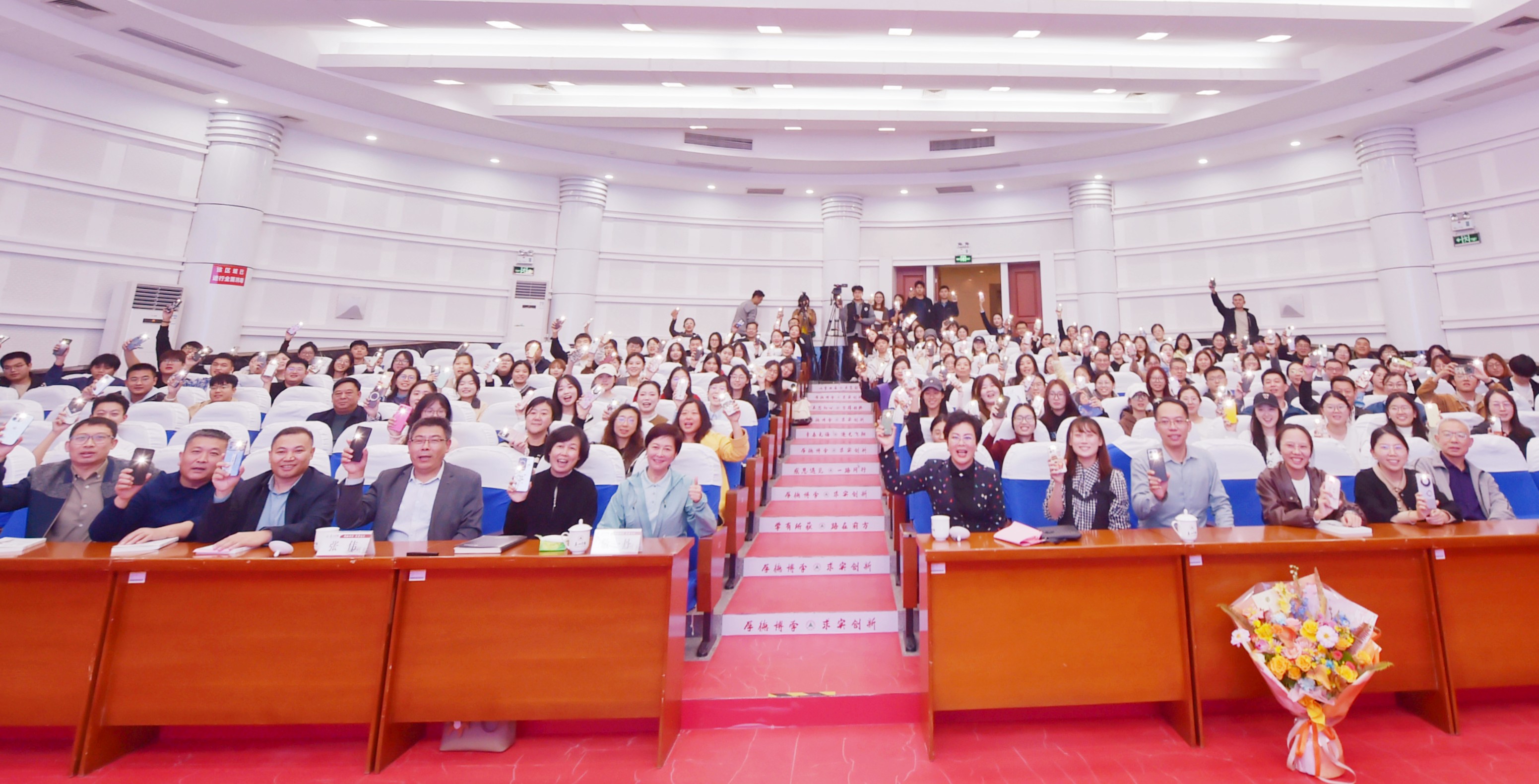 活动尾声,学校教师代表为敬一丹赠送鲜花。讲座结束后,师生“粉丝”们踊跃“追星”,邀请敬一丹签名或合影留念。