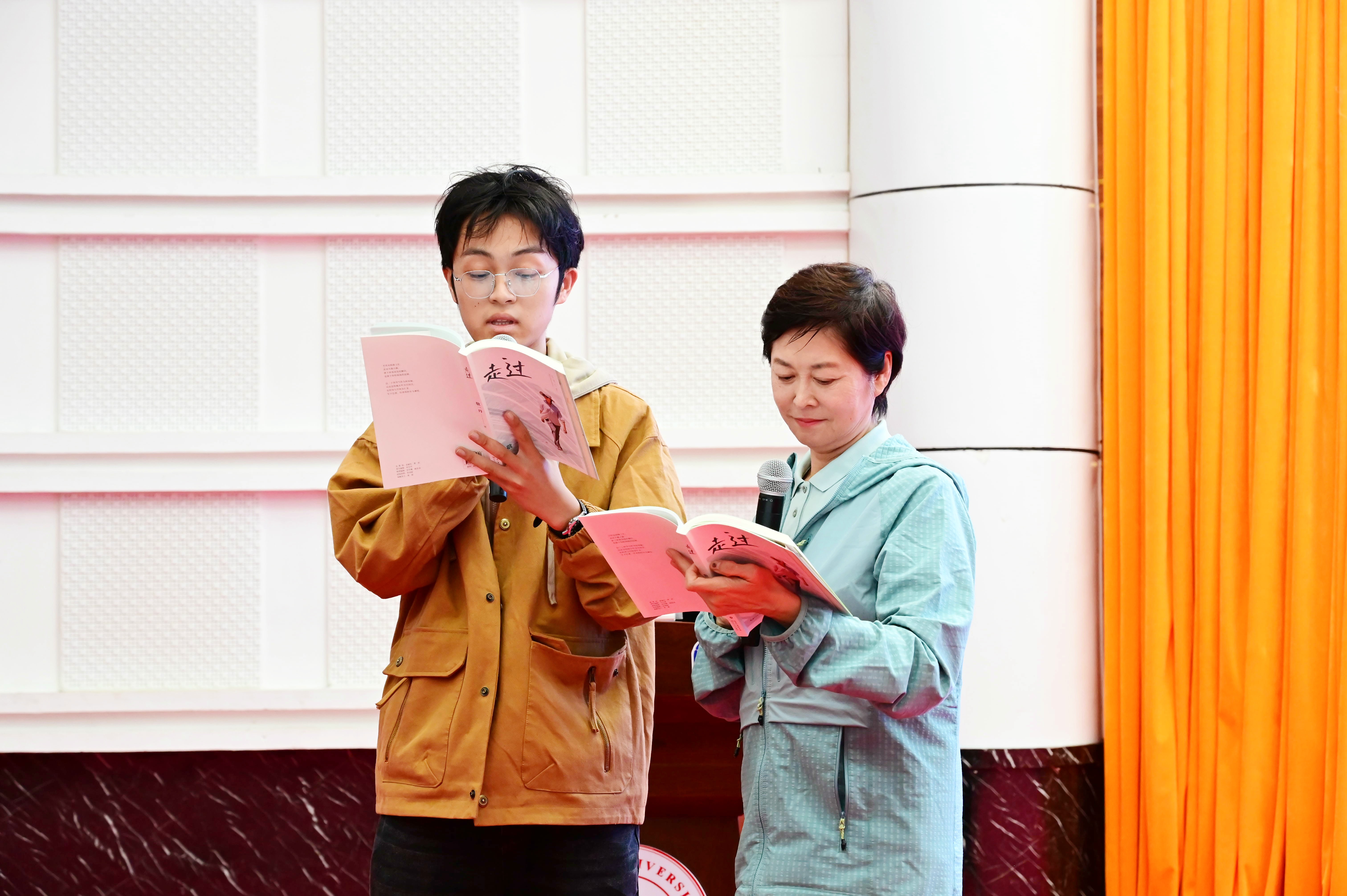 讲座过程中,敬一丹还特意选取了一段描写泰山的文字,邀请学生共同朗诵,并从专业角度对学生的朗诵技巧进行指导。